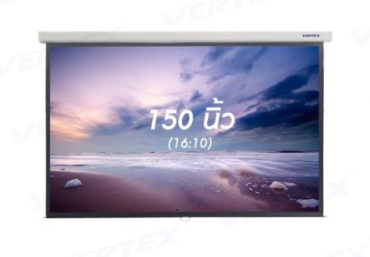 จอชนิดแขวนมือดึง เนื้อจอเป็นชนิด MATT WHITE วัสดุชนิด FIBER ด้านหลังเคลือบสีดำ ระบบลูกปืนกลม (ROLLER LOCK) ติดตั้งผนัง หรือเพดาน
