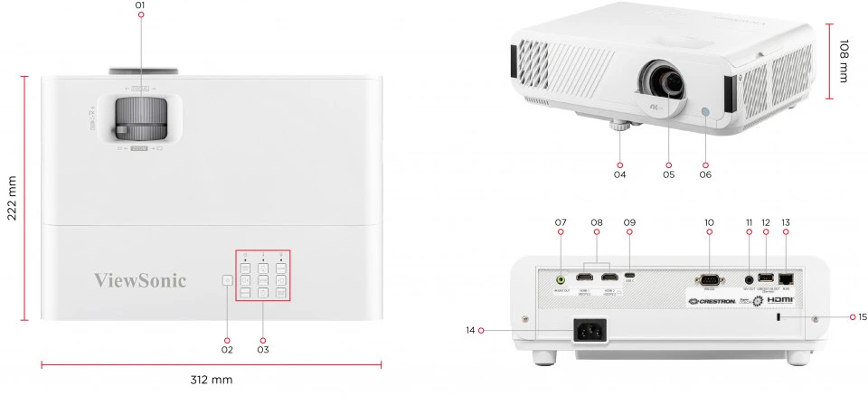 - Flexible installation: 1.3x optical zoom, warping adjustment and side projection capabilities